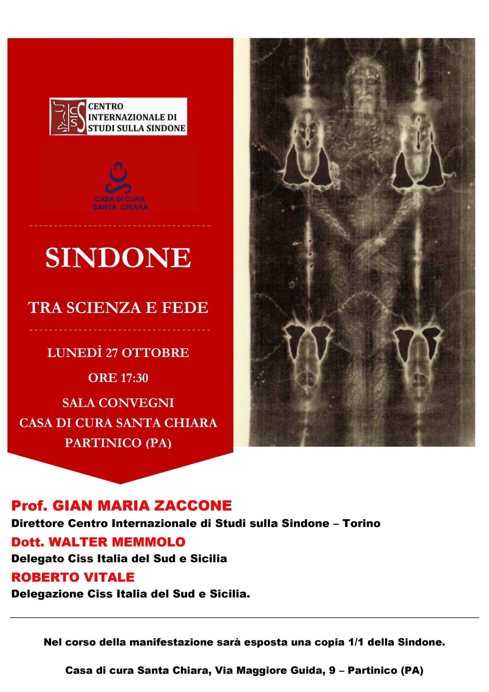 Unisciti a noi Lunedì 27 ottobre 2025 per il convegno “Sindone: Tra Scienza e Fede”. Ti aspettiamo presso la Sala Convegni della Casa di Cura Santa Chiara alle 17:30 per un importante momento di approfondimento e dibattito.